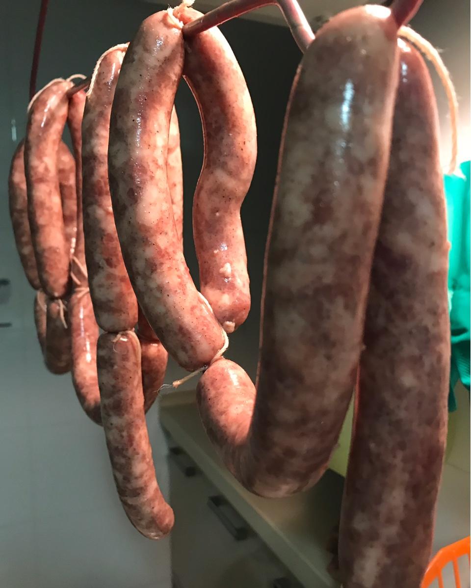 感谢厨友的配方,斤两过磅。两根半肠子中途有点露馅,剩了30克馅料,用电饼档烤了肉饼,味道棒棒哒👍,等待明天的成品