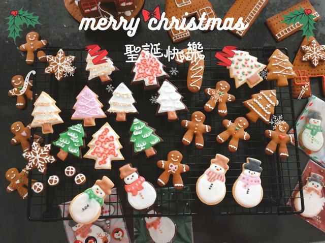 昨天做的圣诞糖霜饼干和姜饼屋