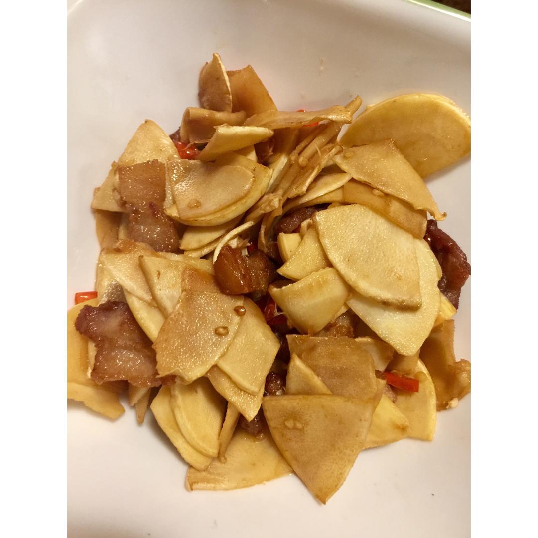 因为没有腊肉,就用的五花肉炒冬笋,也很好吃的啊!