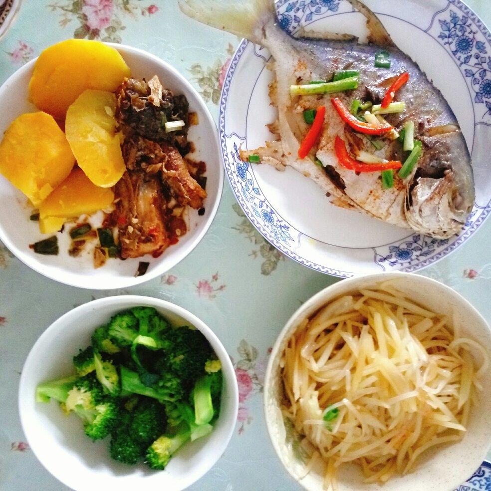 阴天的午餐,我尽力了。鲳鱼基本都是我吃的。