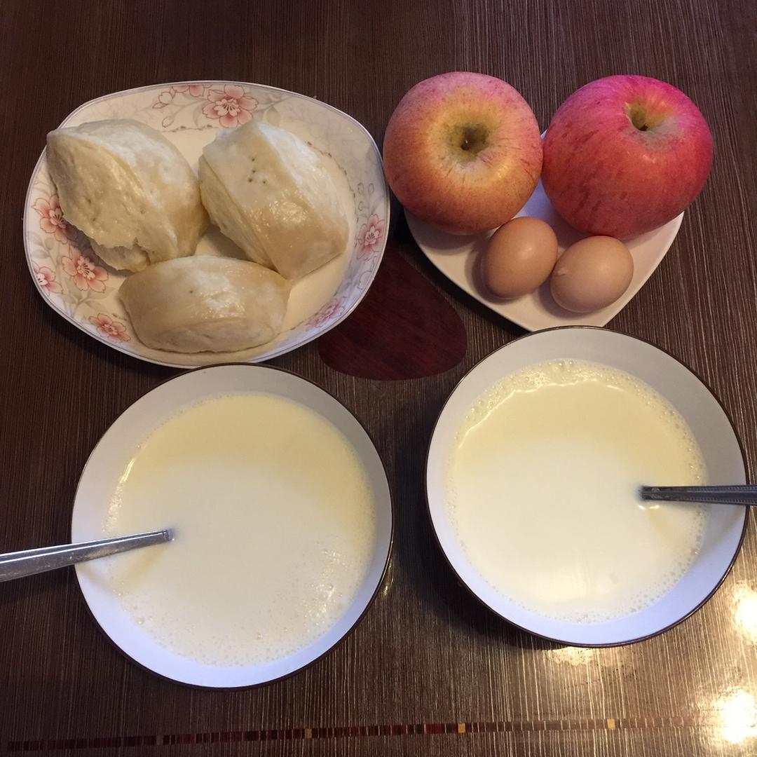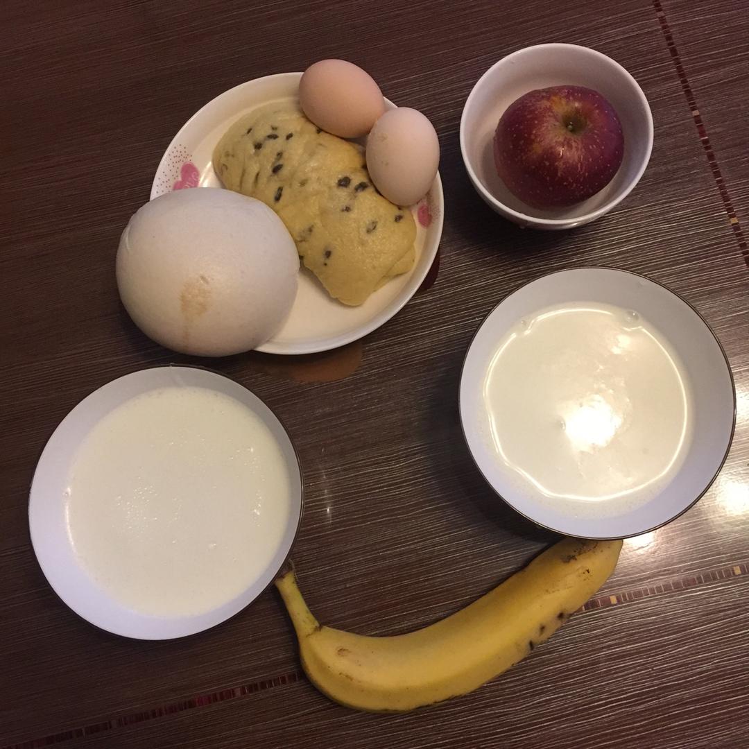 鲜牛奶&鸡蛋🥚&花卷&苹果🍎&香蕉🍌(好久木有po图辣~...