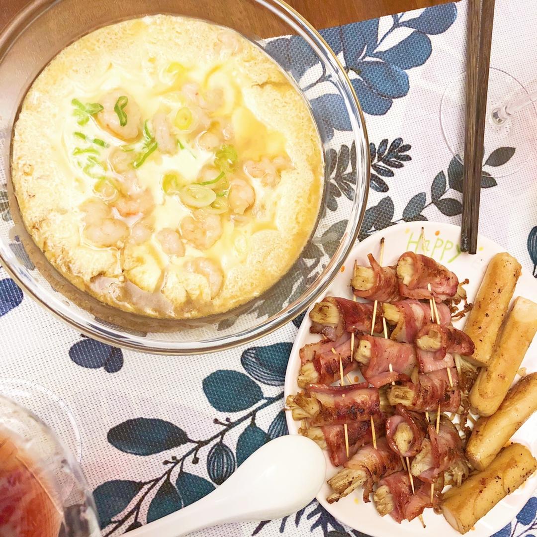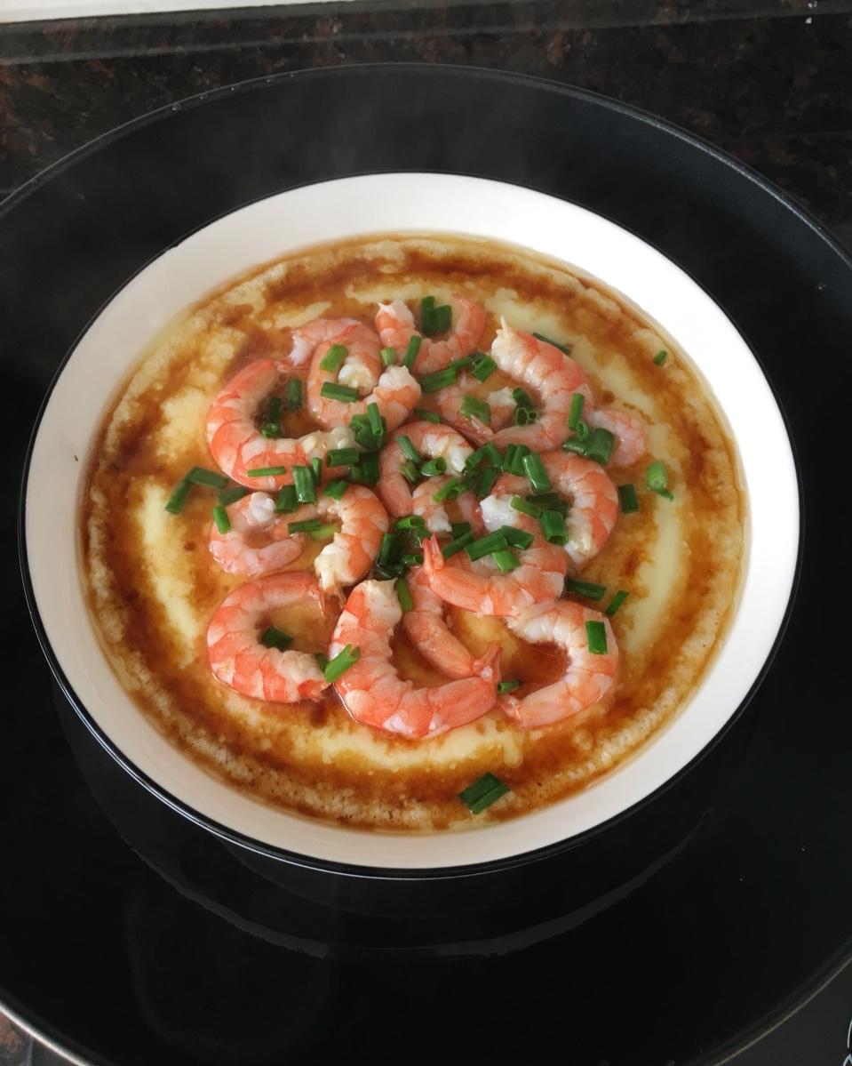 冷水就放上去蒸的,火也小,结果水蛋没凝固,后面还好老公机智,放虾仁后又调大些火蒸了一会儿