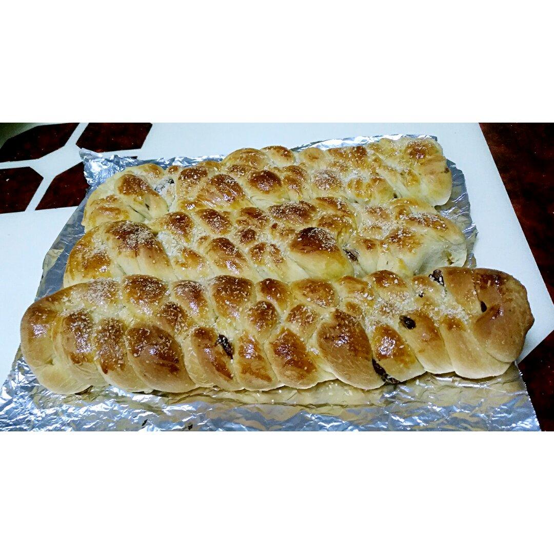 淡奶油辫子面包,放了点葡萄干,撒了点椰蓉。