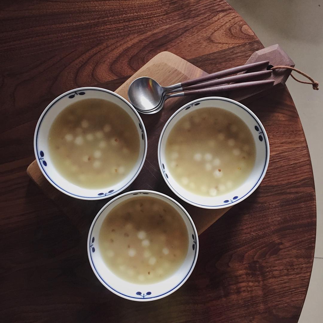 昨天的早饭,桂花小圆子,放了年糕一起煮,图个好兆头。