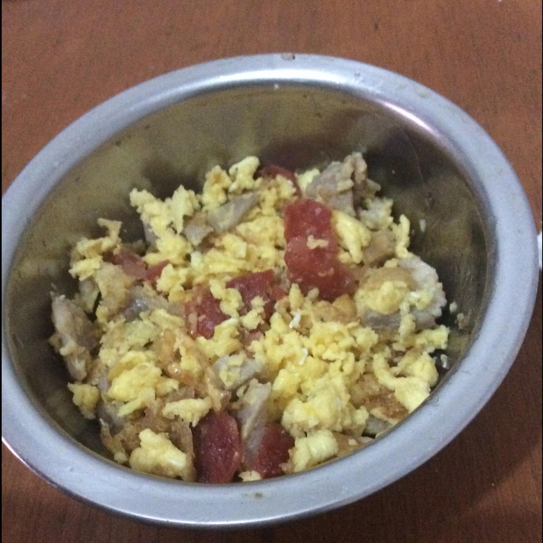 一个人食,量不多。加了香肠。。吐糟一下:奶奶腌的咸肉真咸。😆😆