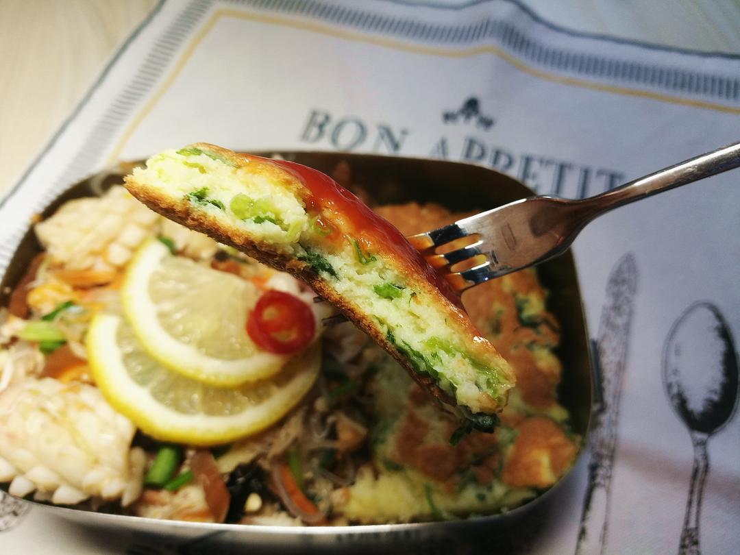 煎了一个菠菜蛋饼来配粉丝沙...