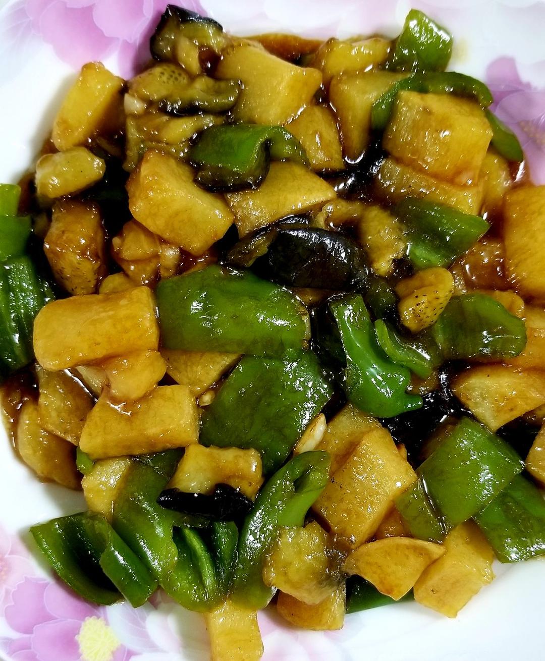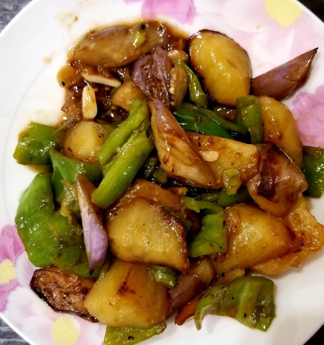 成功。下次土豆茄子都切滚刀块,茄子也不裹淀粉,再看看效果。