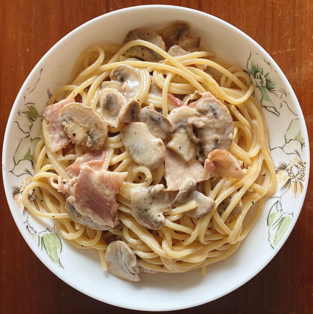 今日份奶油培根配白葡萄酒提香意面成功