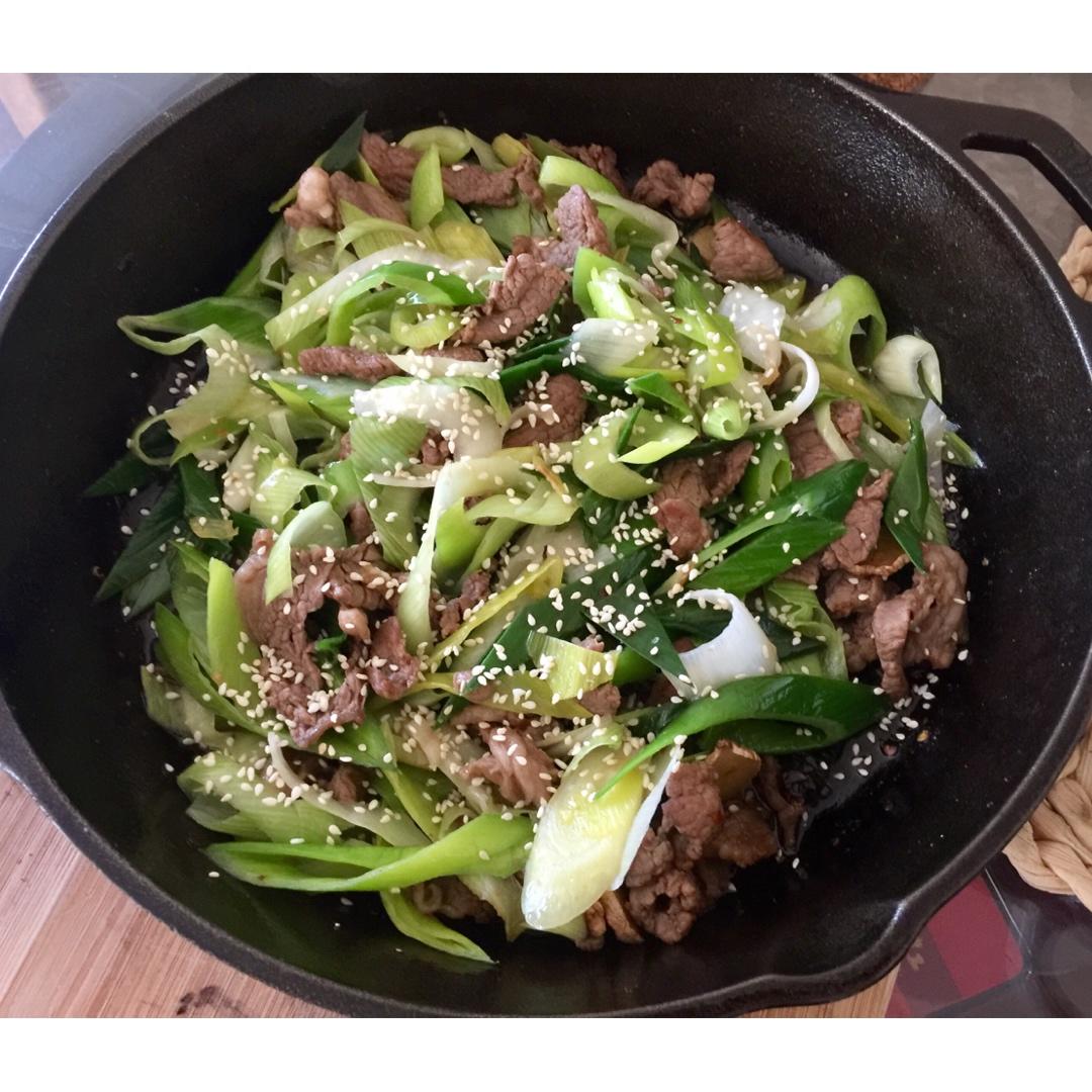 大葱炒羊肉。