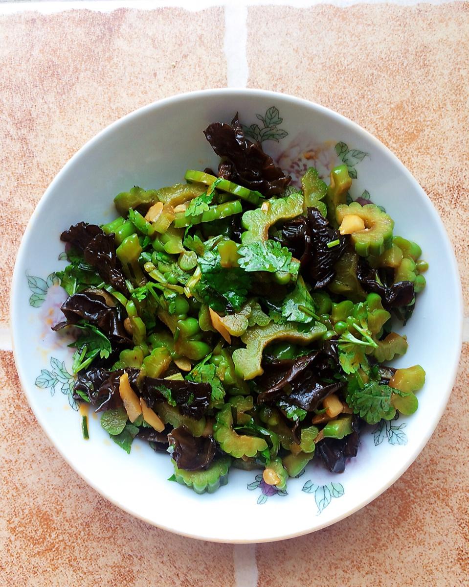 自己种的苦瓜香菜凉拌超好吃