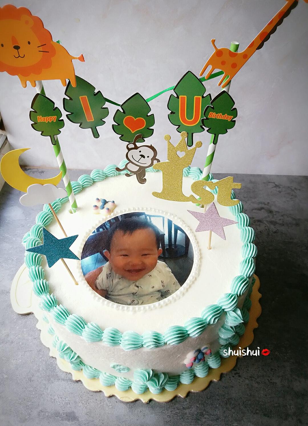 给朋友儿子周岁生日做了个简单的蛋糕,小家伙笑的开心的甚...
