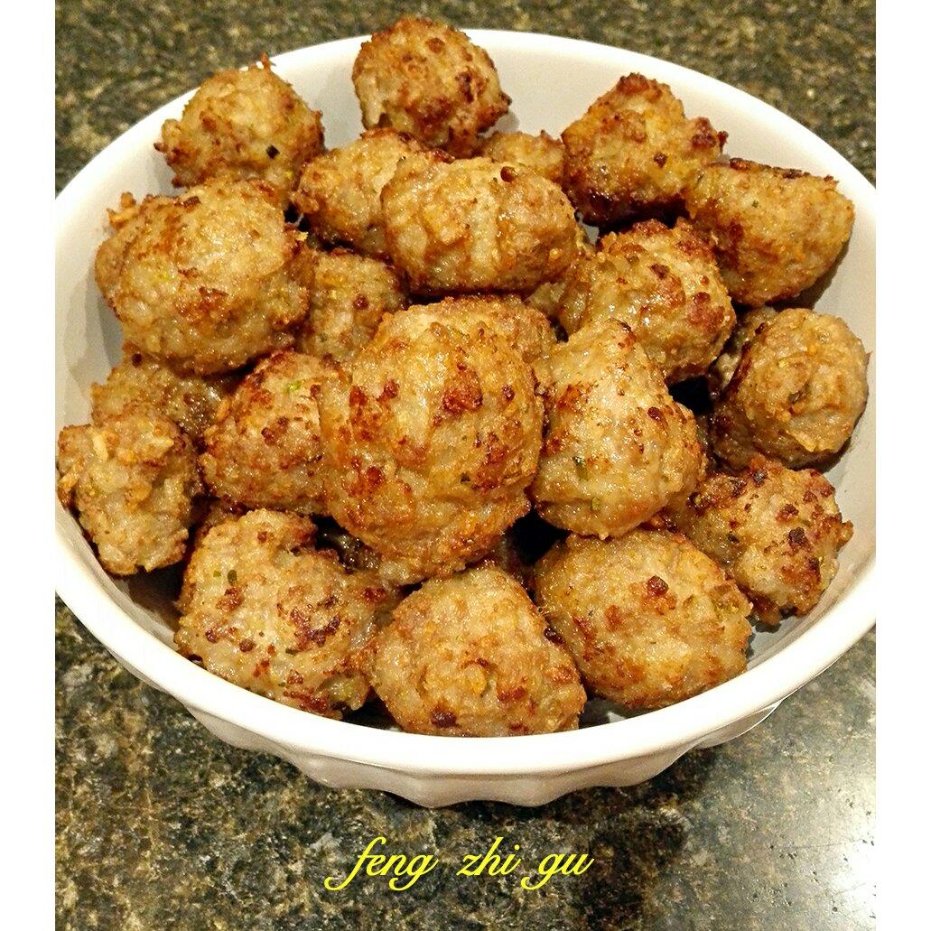 又炸了一大碗糯米肉圆子, 和公公学的江浙一带的传统菜, 分装好速冻起来,随时想吃拿出一小包,...