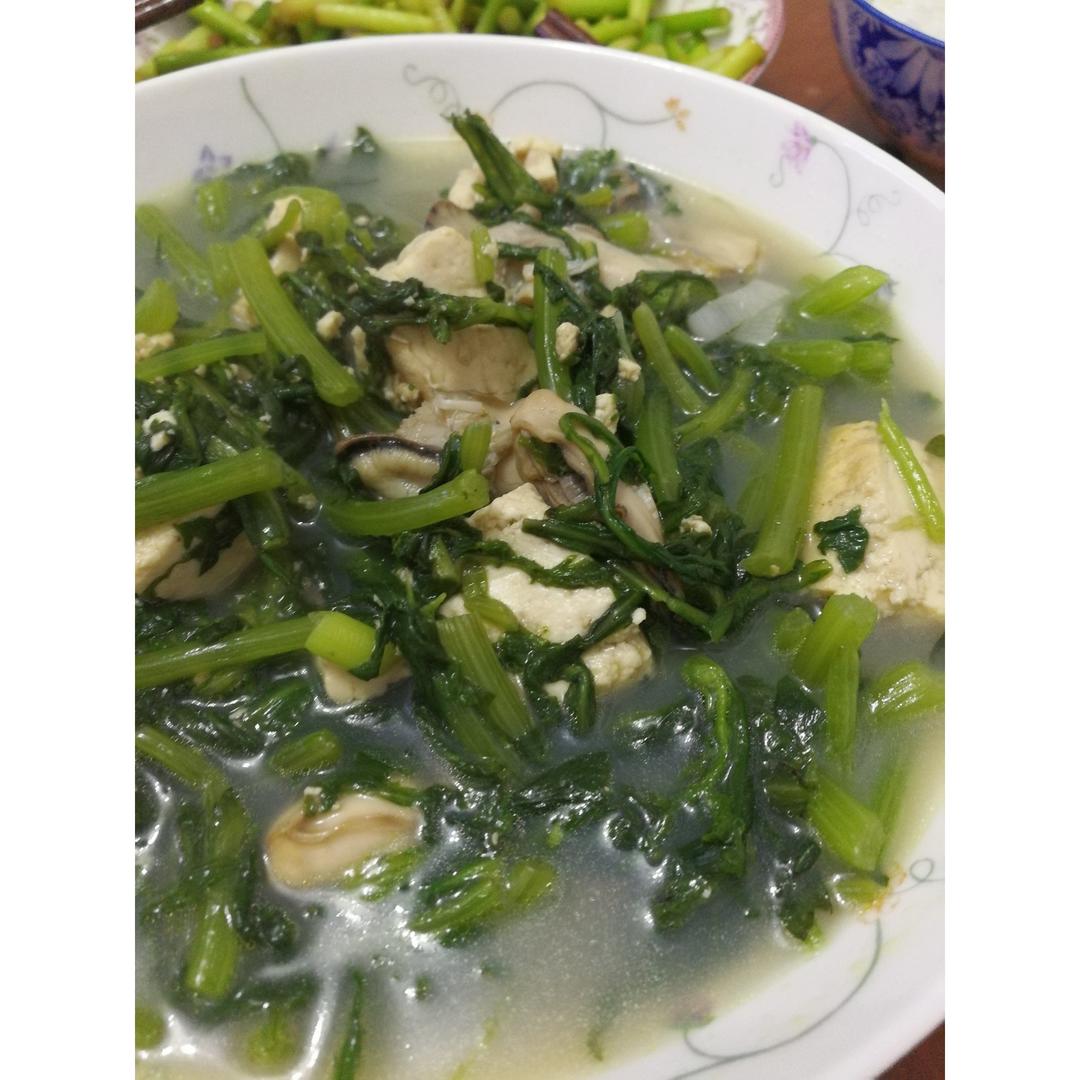 茼蒿牡蛎炖豆腐,真正的三鲜!