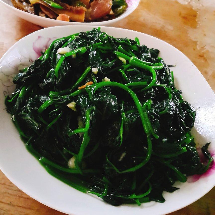 出来冒个泡,蒜蓉红薯叶尖。