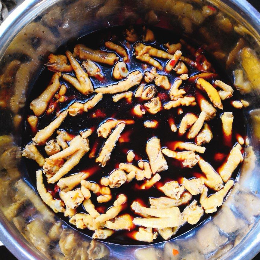 酸辣泡鸡脚:鸡脚剪指甲剁成三段,冷水下锅加料酒煮两分钟去味,...