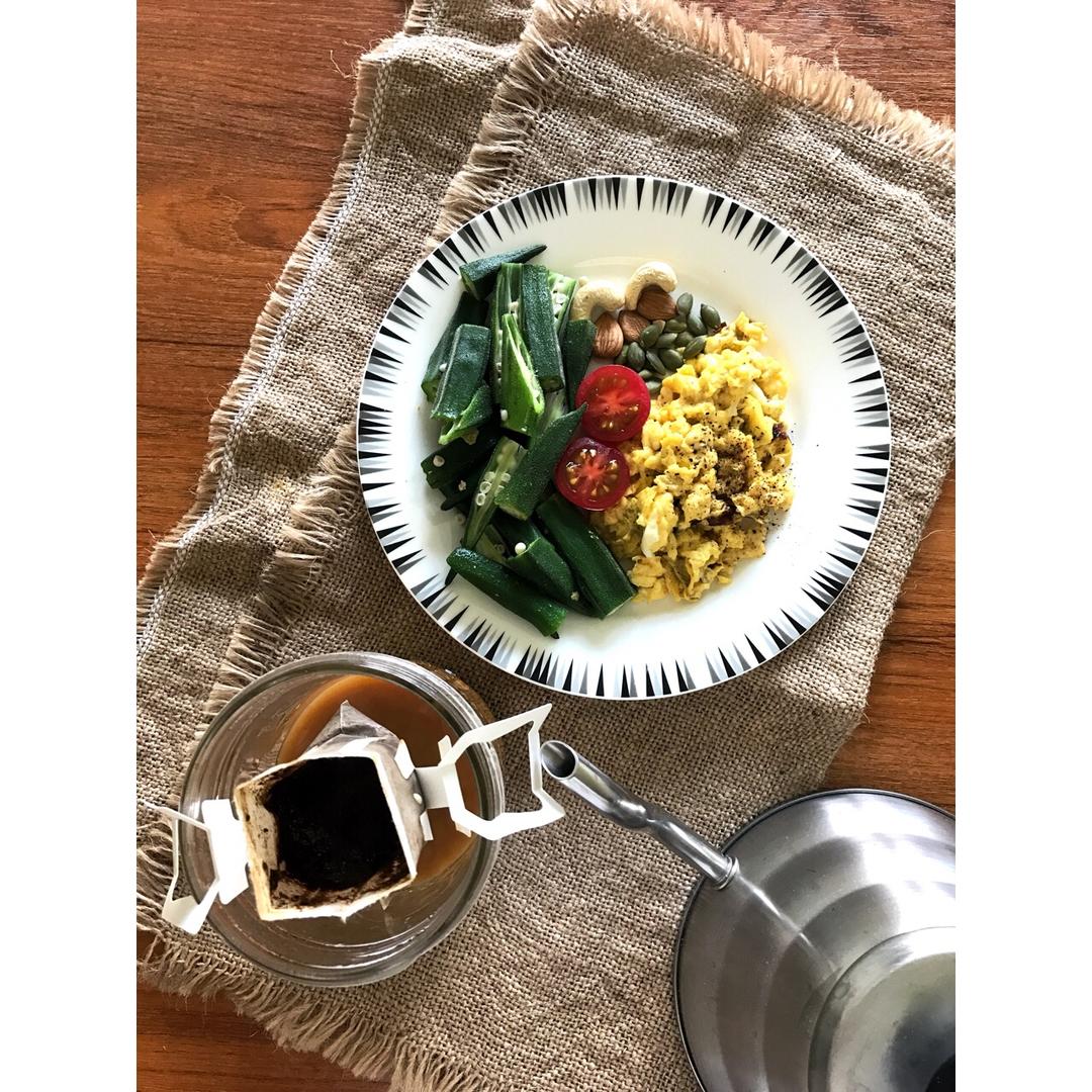 炒蛋坚果和秋葵 #早餐•2017年4月2...