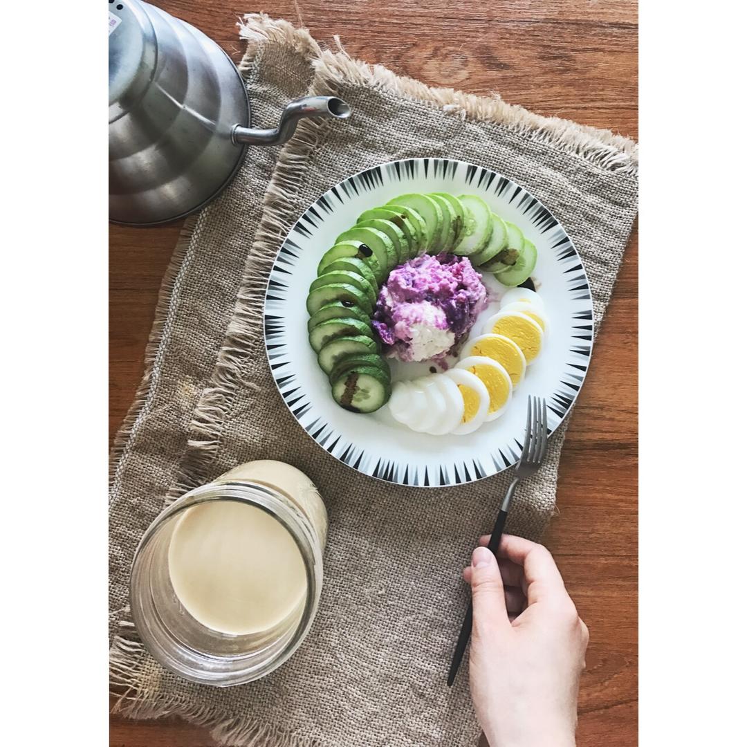 昨晚做的时候强忍住没有全都舔完的紫薯酸奶