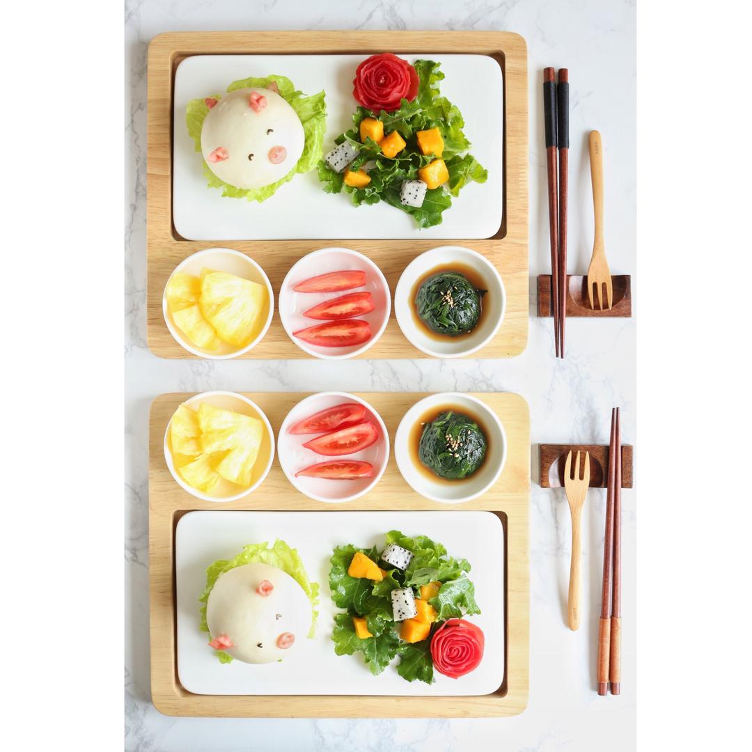Day3.小猪馒头猪排汉堡+沙拉+姜汁菠菜+糖渍西红柿+芒果。
