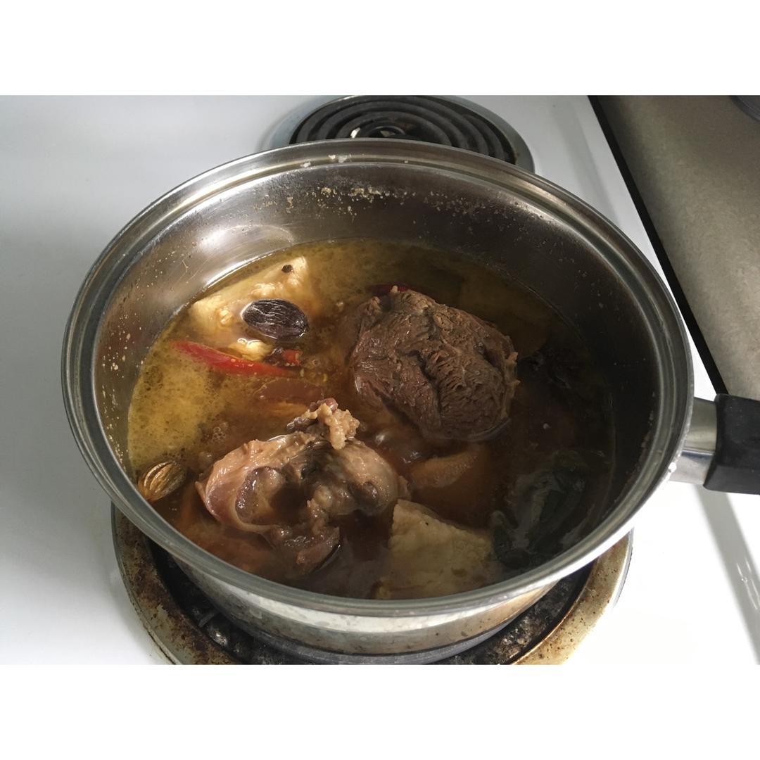取三家卤方之长,加上老妈告诫的要炒糖色,开的卤我很满意,昨儿做饺子去的皮一并卤了,开熏😄