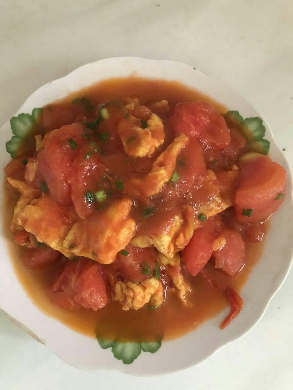 这一张是刚出锅的,非常好看,第二张就是放了一会的鸡蛋番茄,看起来就不怎么好看了,味道很好。