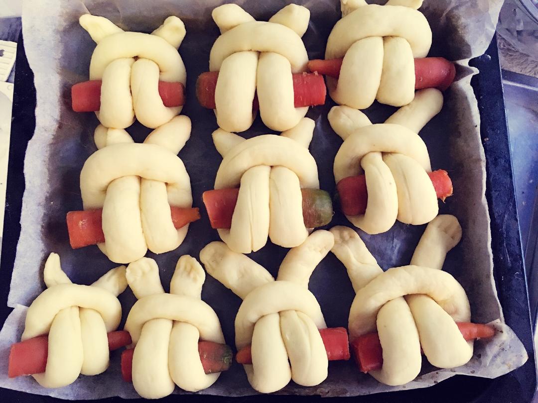 亲们周末愉快🌹☕️🍉! 一大早五点🕔钟就醒了,起来先来下厨房逛逛,🕕六点钟开始大干起来...,先做上火火兔🐰面包,又榨蔬...