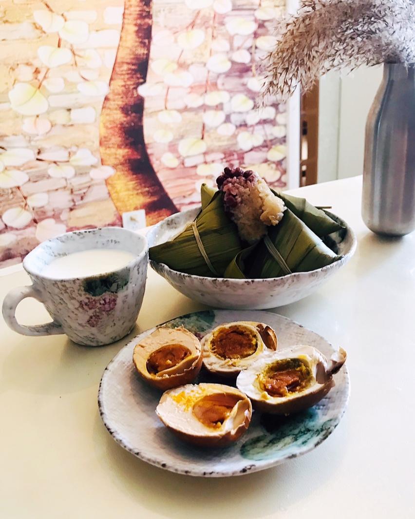 粽子 烤海鸭蛋 牛奶 偷懒的早餐