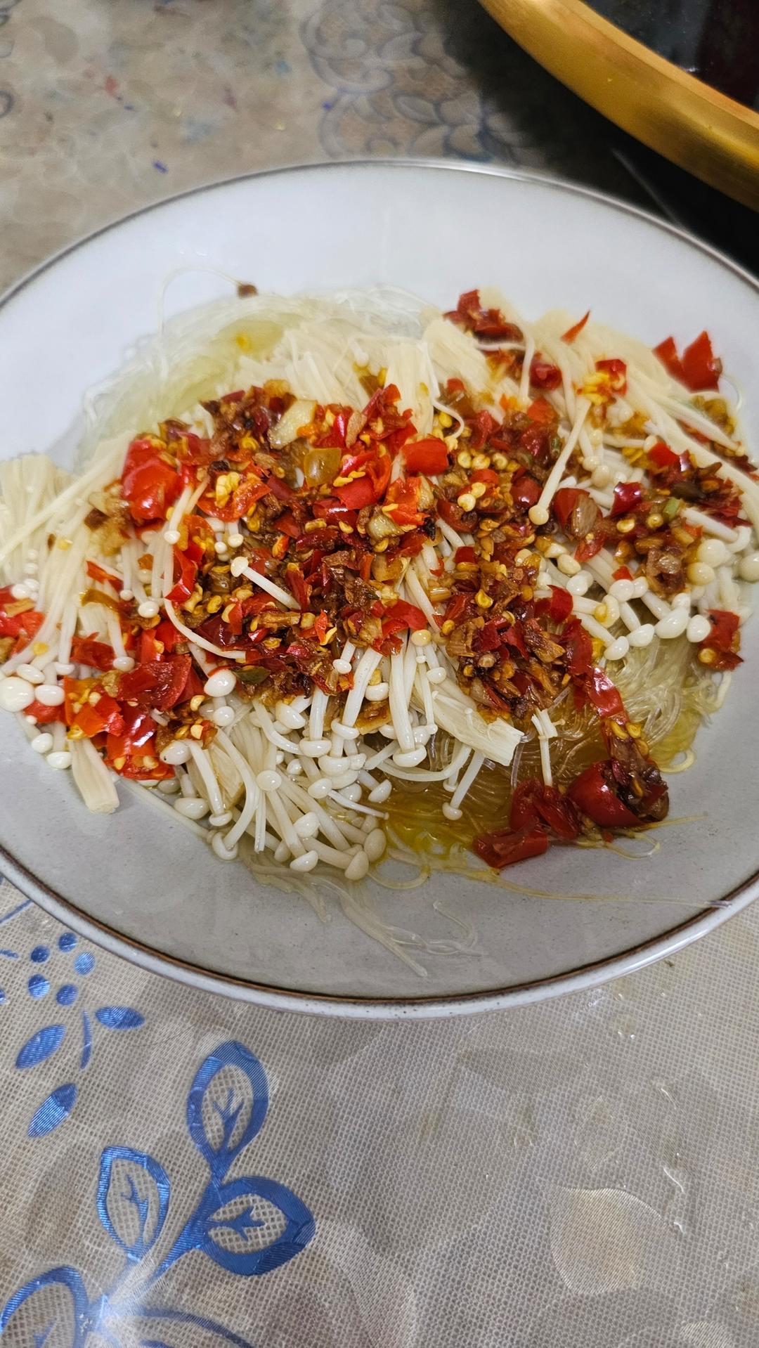 蒜蓉剁辣椒蒸粉丝金针菇
