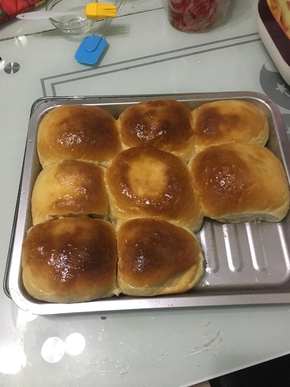 加了自己做的红茶苹果馅 中间那个是豆沙的 刷了点蛋液 嘿嘿 早饭有着落了