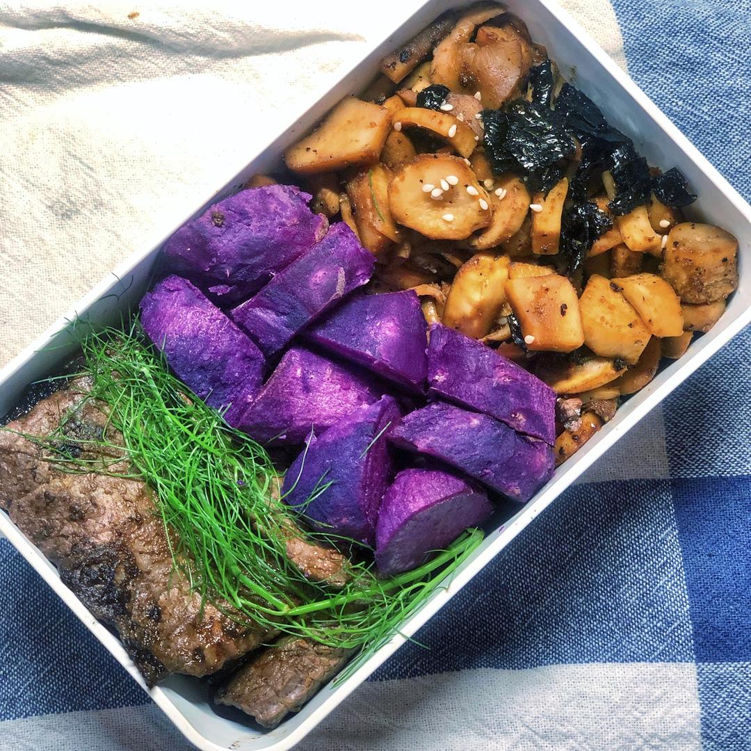 😂懒懒の我用滴外卖的盒子装盘,没有炸茄子直接抹盐沥出水,搭配牛肉感觉还不错?