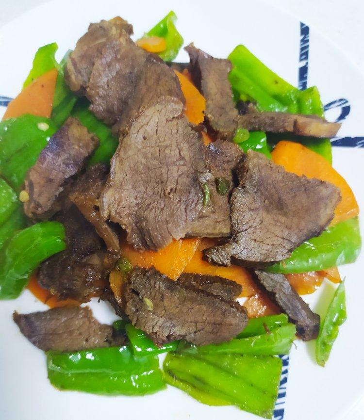 甜椒的爽脆清甜配上腌制过的牛肉,好吃~