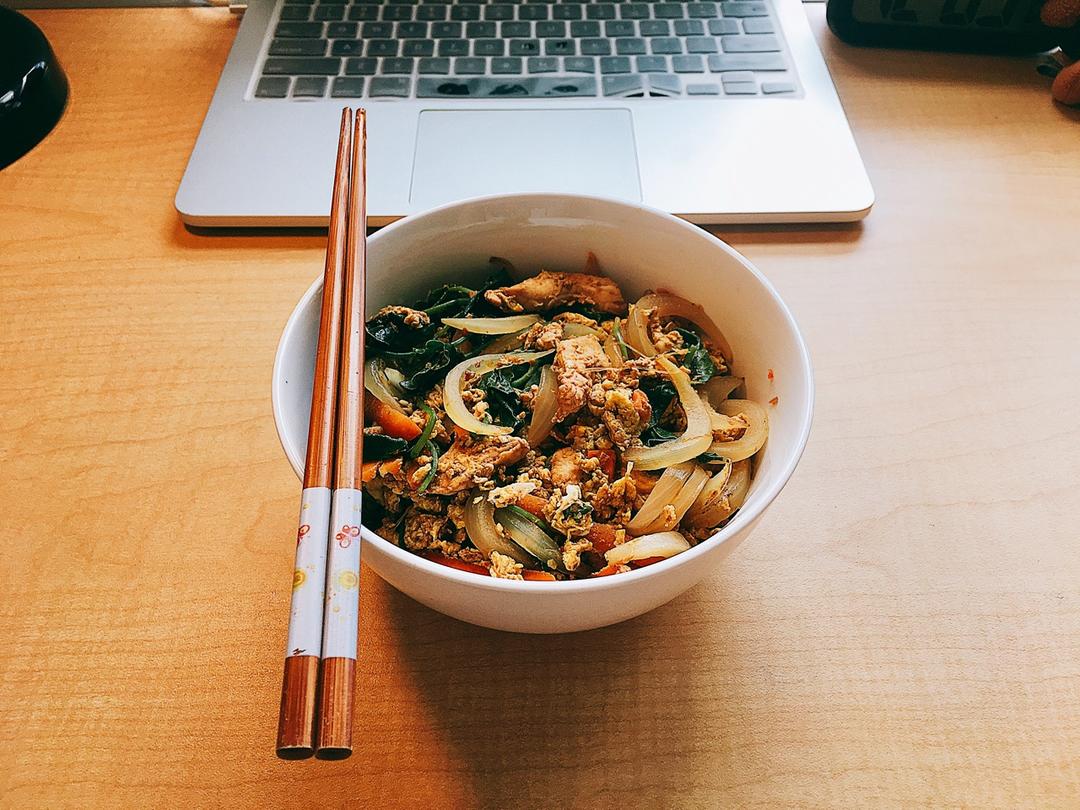 大家中午好!一碗卖相一般但是还蛮好次的盖浇饭🍛🙈次完去meeting🤓