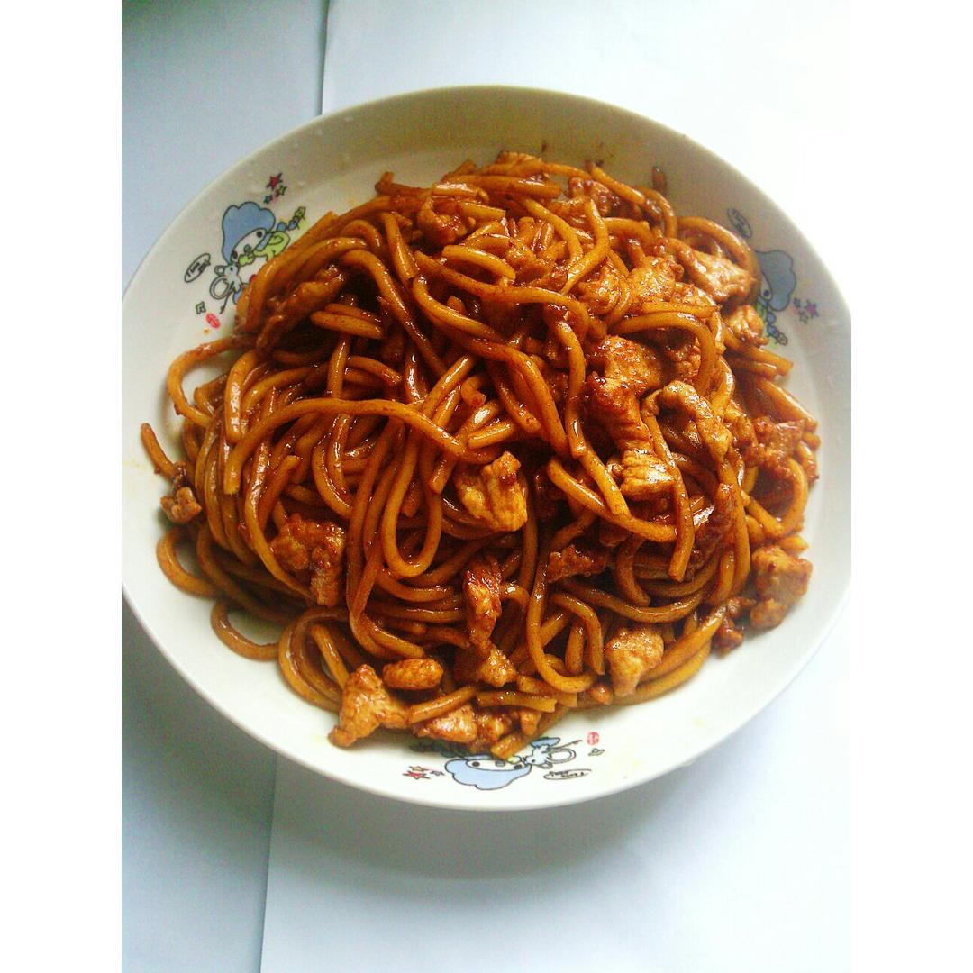 超级好吃又朴素的炒面!(๑><๑)不过酱油放的有点多了,肉也不是很嫩呐,以后得...