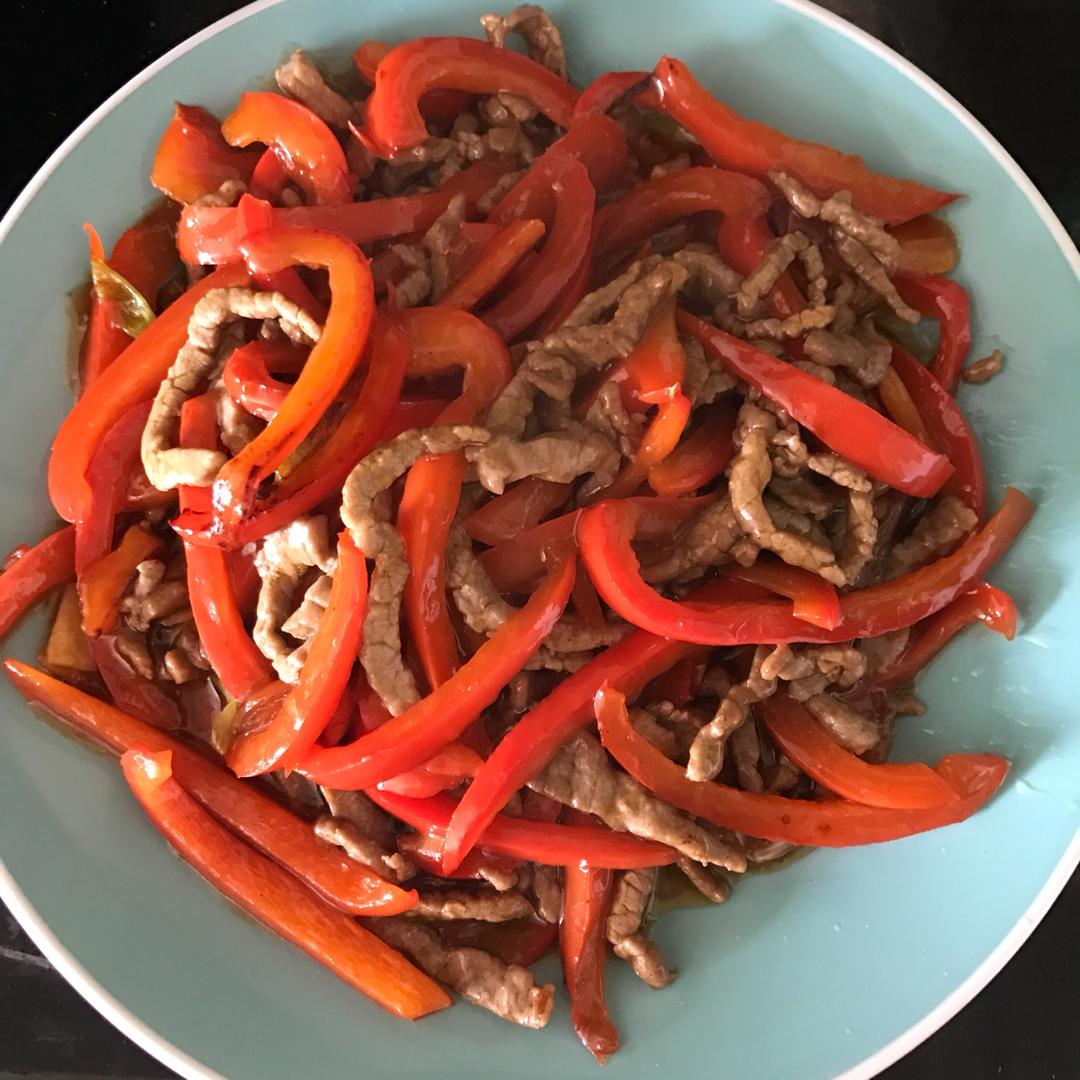 红椒牛肉丝 清炒小豆苗