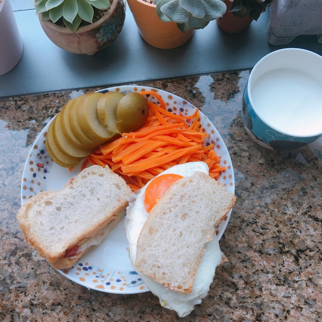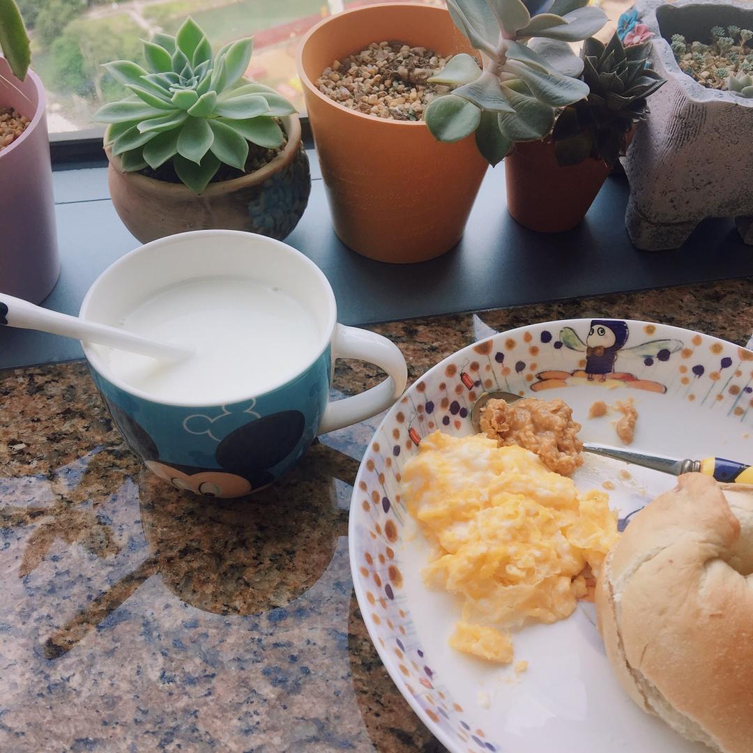 昨天的早餐 不小心打碎了變炒蛋的煎蛋~