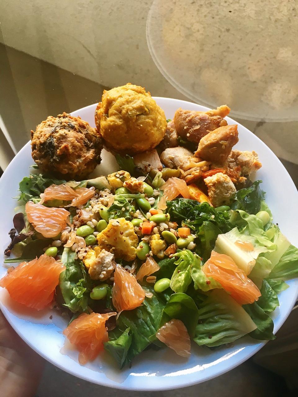 玉米南瓜马芬量减半做的,真的是满口粗粮的感觉😌海苔肉松的肉松放的很多每一口都是满满的肉松~配上昨天在whole food...