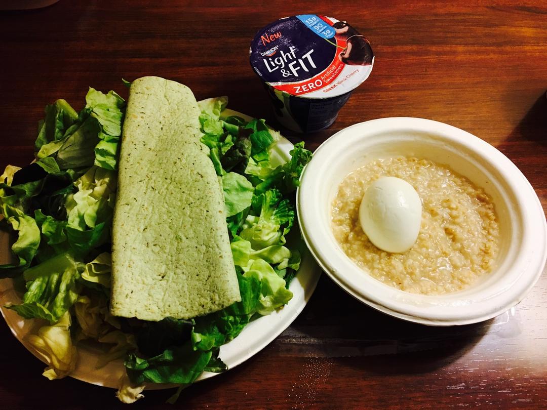 今天换了种生菜。酸奶是前两天逛超市发现被贴了“即将过期降价处理贴”所以买回来尝个鲜的,号称没有人工甜味...