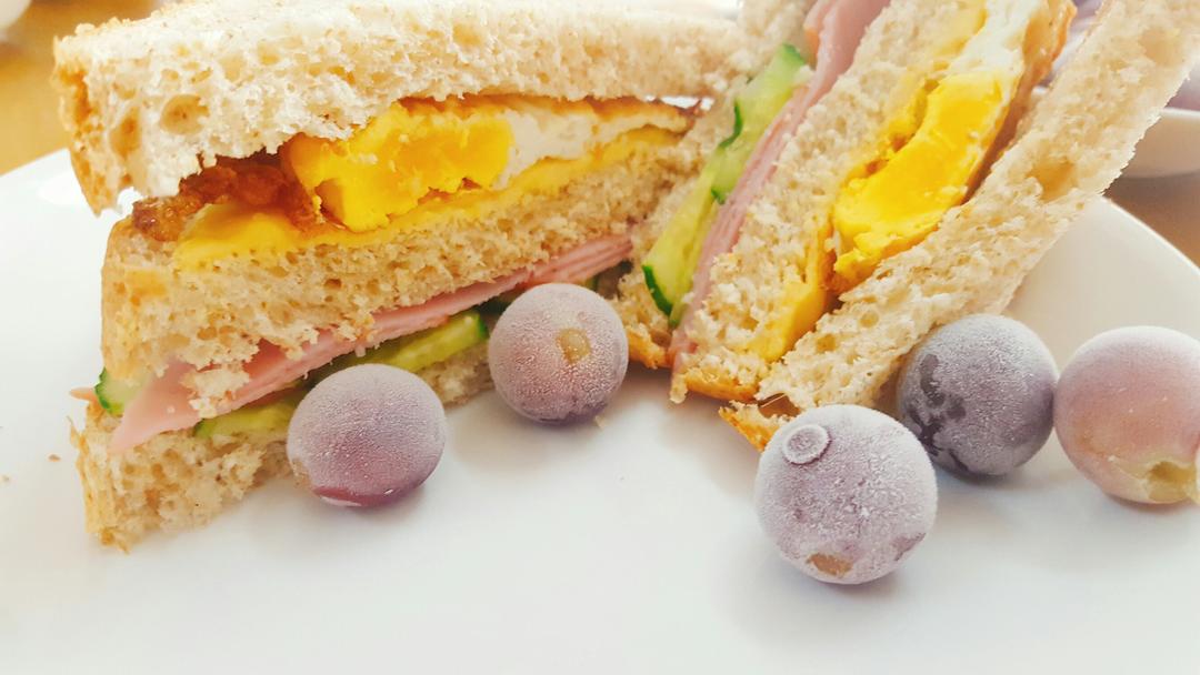 历史上某一天的早餐~三明治+冻葡萄~绵密口感的葡萄珠~棒棒~