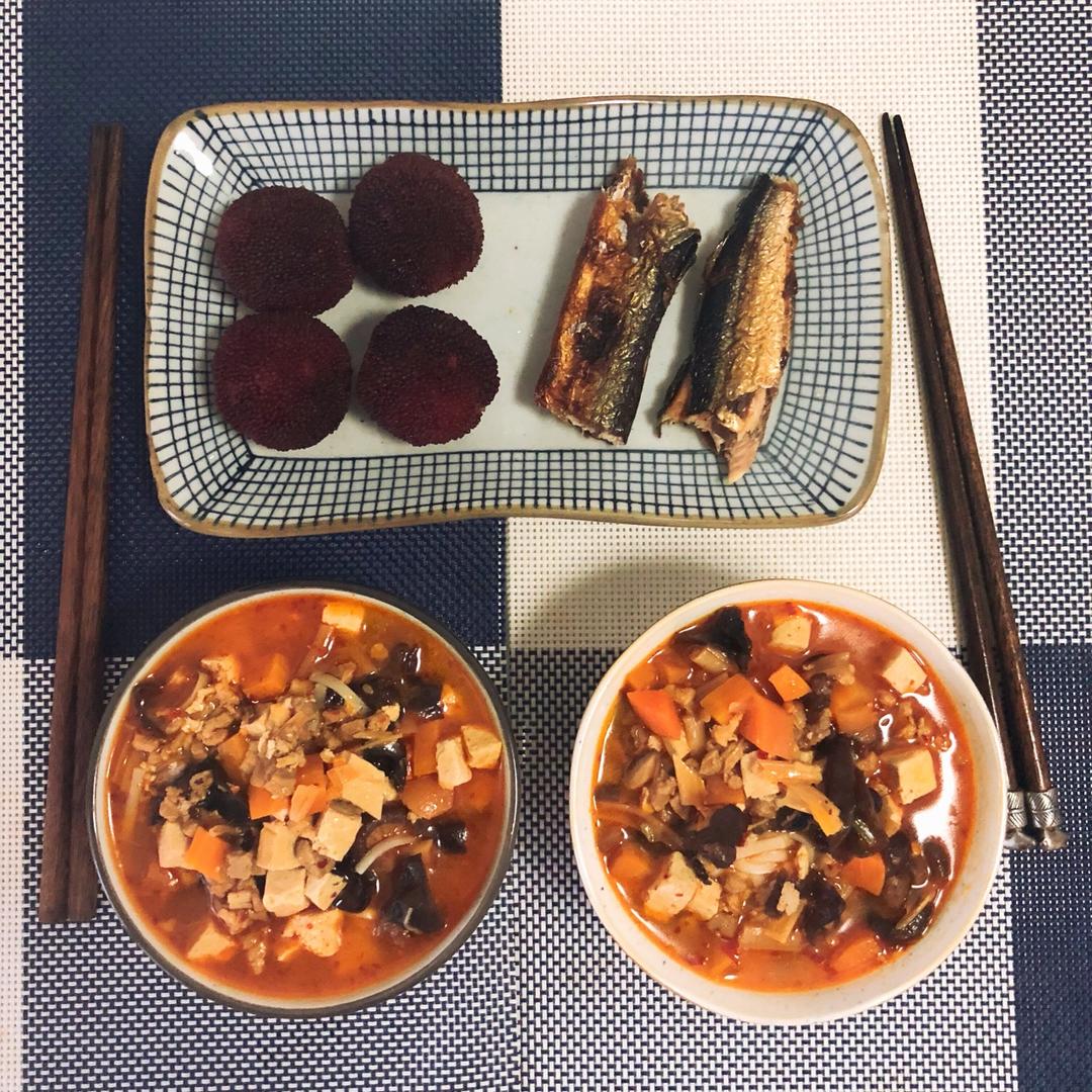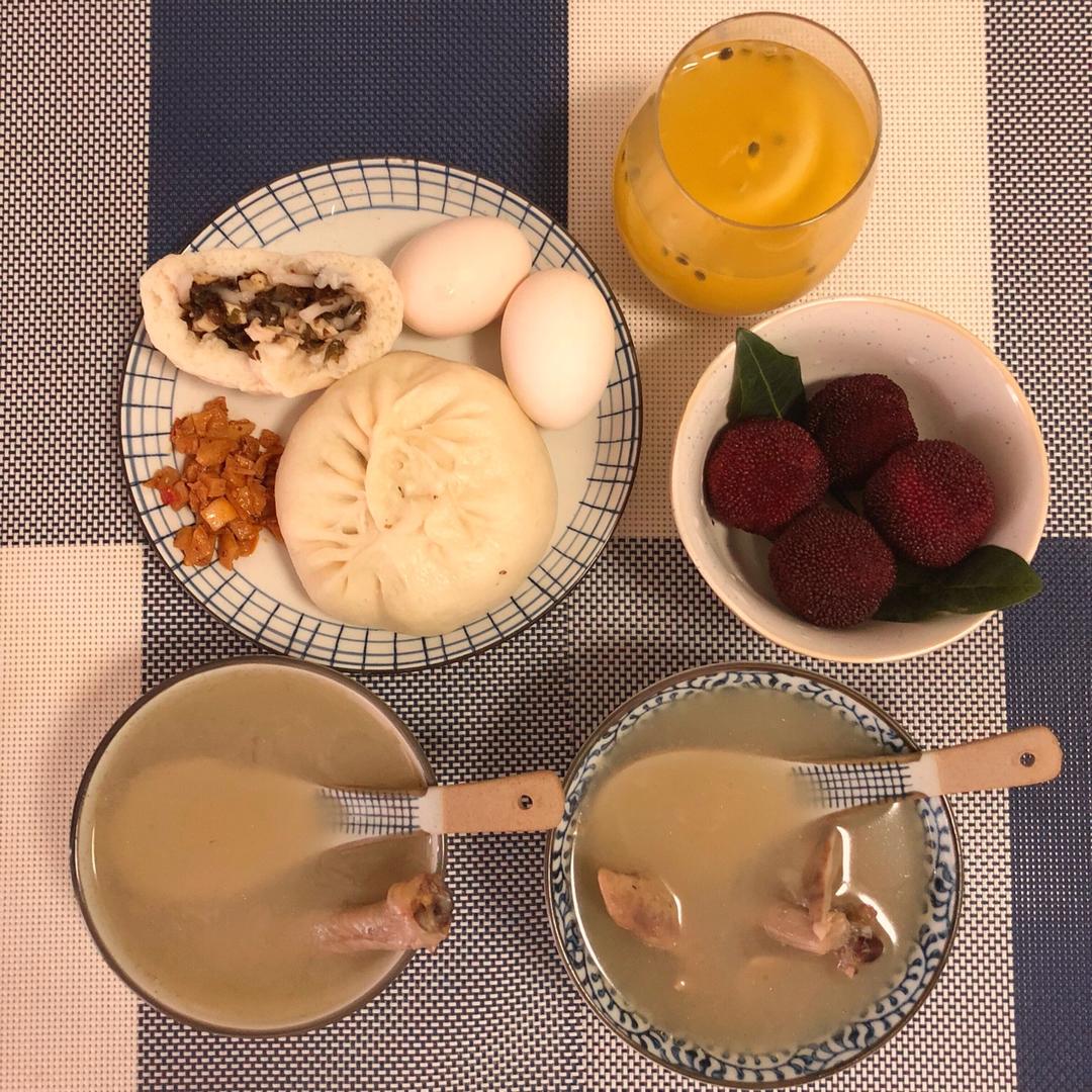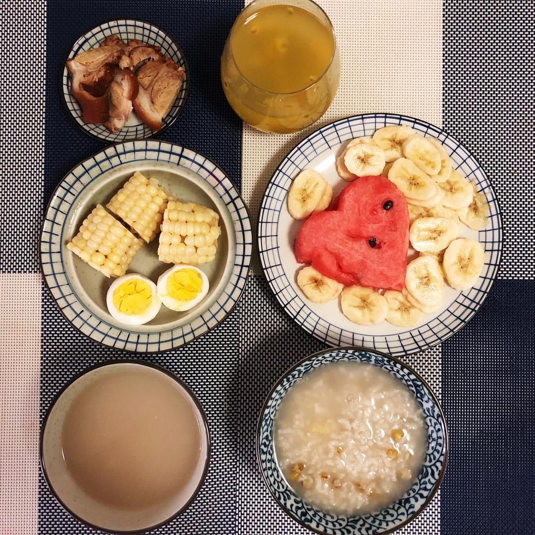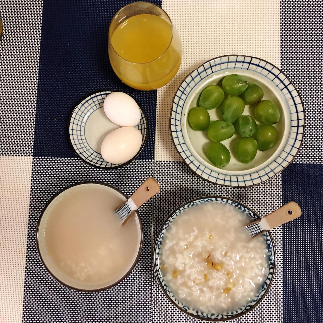 绿豆粥+玉米+茶叶蛋+杨梅