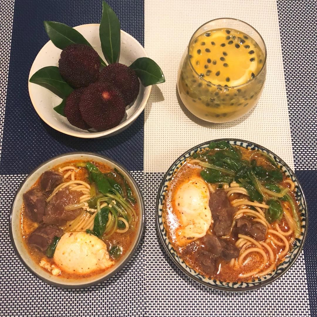 好久没吃牛肉面啦,里面的青菜是我们自己在楼顶种的,收获的第一波,开心的周五!