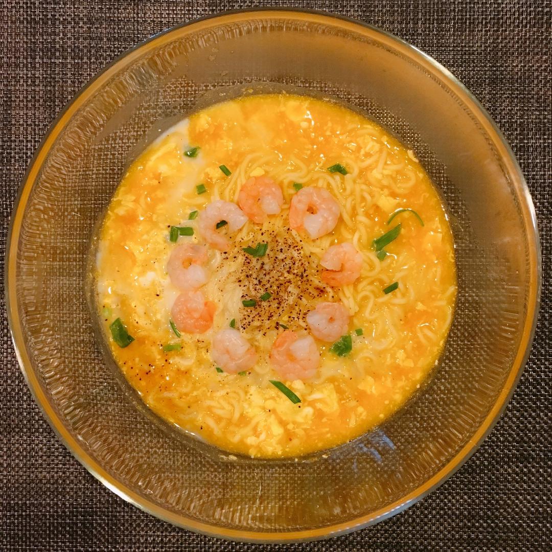 南瓜奶香虾仁汤面