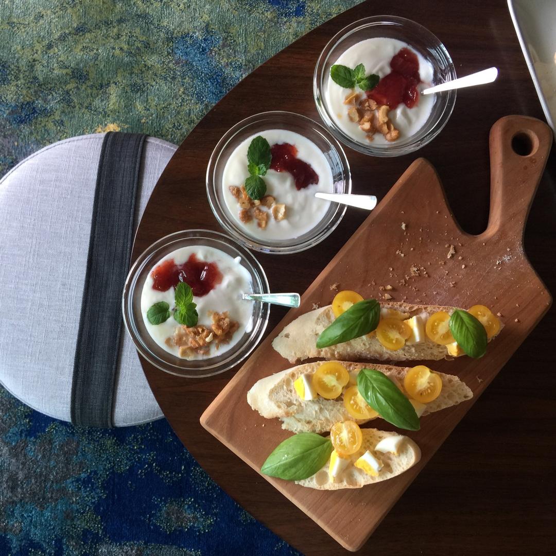 闺蜜家中小聚|自制酸奶+自制草莓酱+自种罗勒+有机番茄