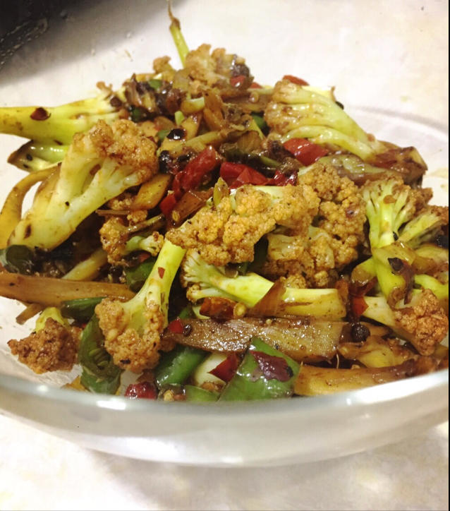 吼吼~一个辣子鸡丁➕一个干锅花菜是今天晚餐啦!就是太辣了些😂……因为我还放了湖南椒。。。继续加油! #晚餐•2017年8...