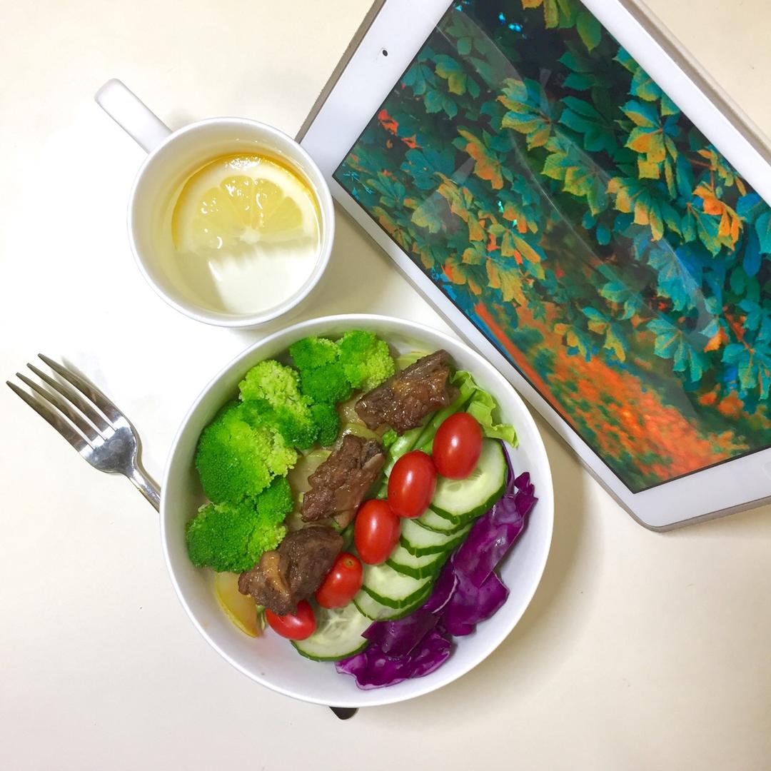 看不出压碗底的货真价实的意面沙拉 还有三块充碗提鲜的梅子糖醋排骨 很满足哈哈🥗打卡Day4 #午餐•2017年8月12日...