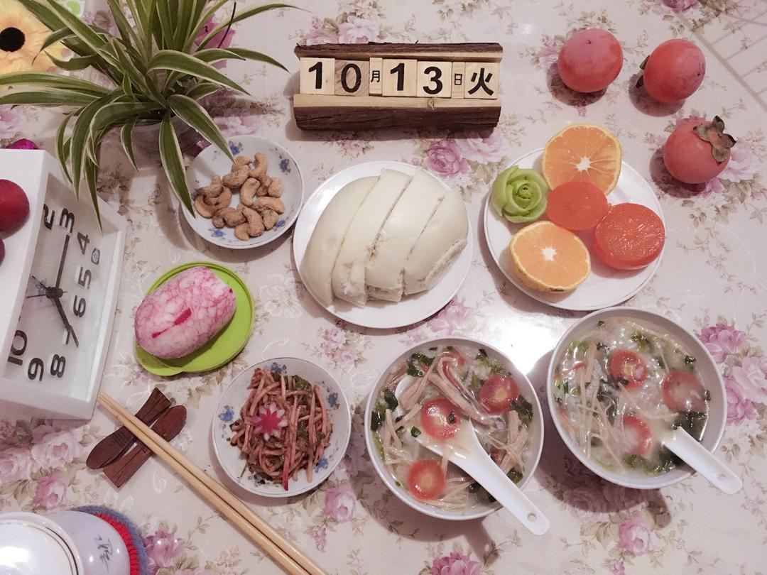 周五好! 煮碗肉丝青菜粥 热个馒头,吃了上班...