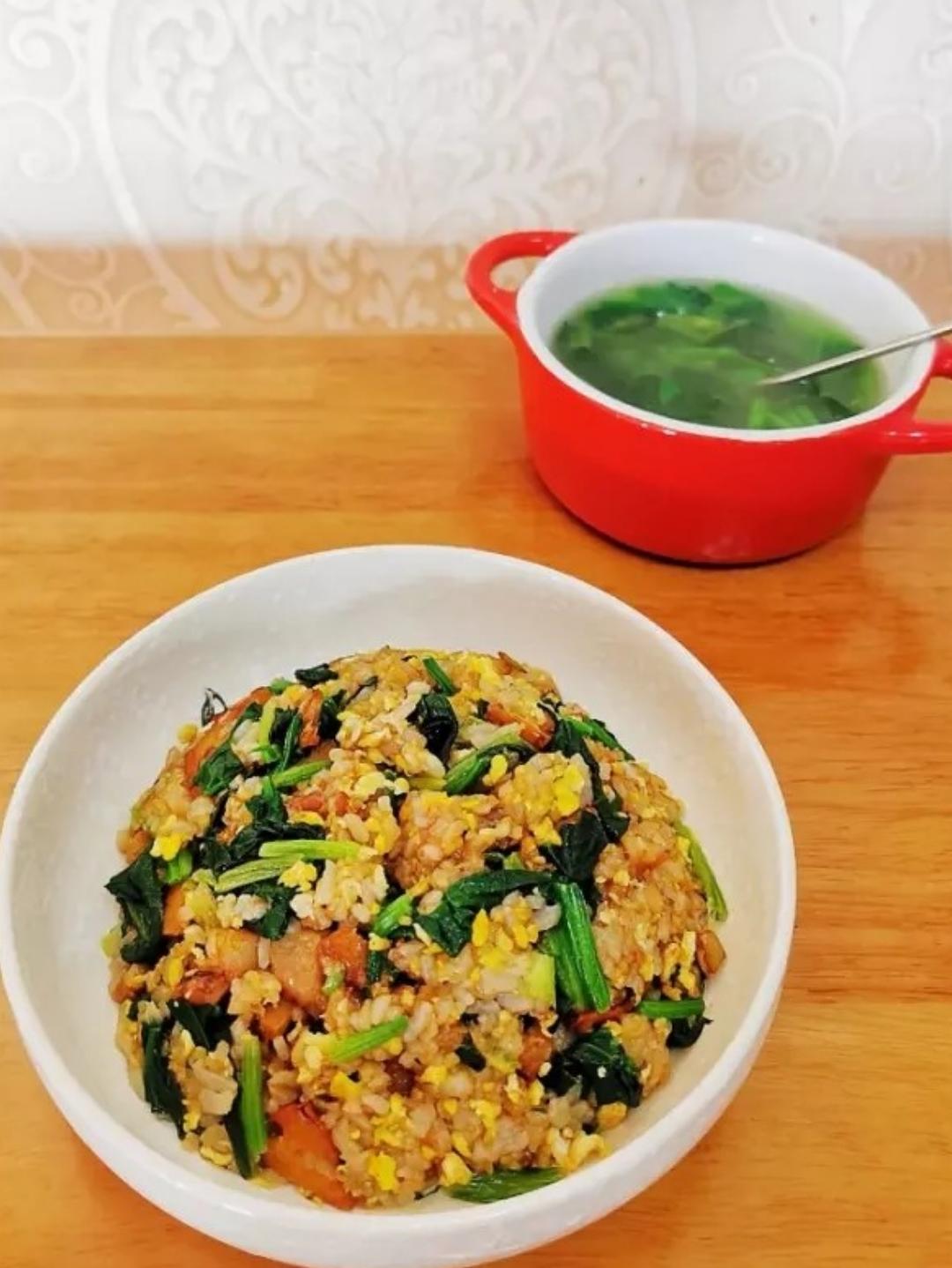 菠菜炒饭配菠菜汤