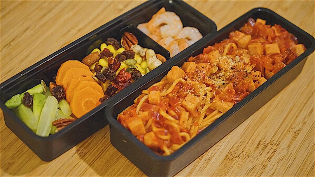午餐肉意面➕杂蔬虾仁➕混合果仁