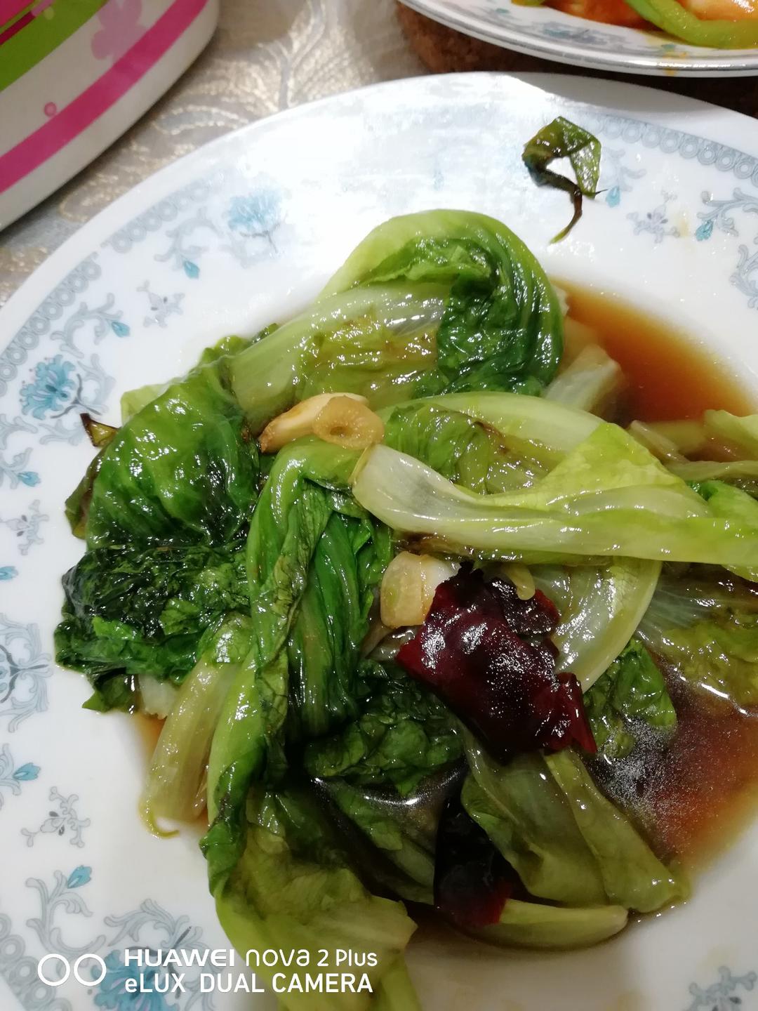 蚝油生菜,葱爆海参,红烧海虾