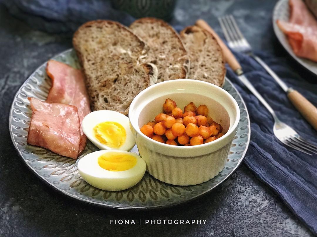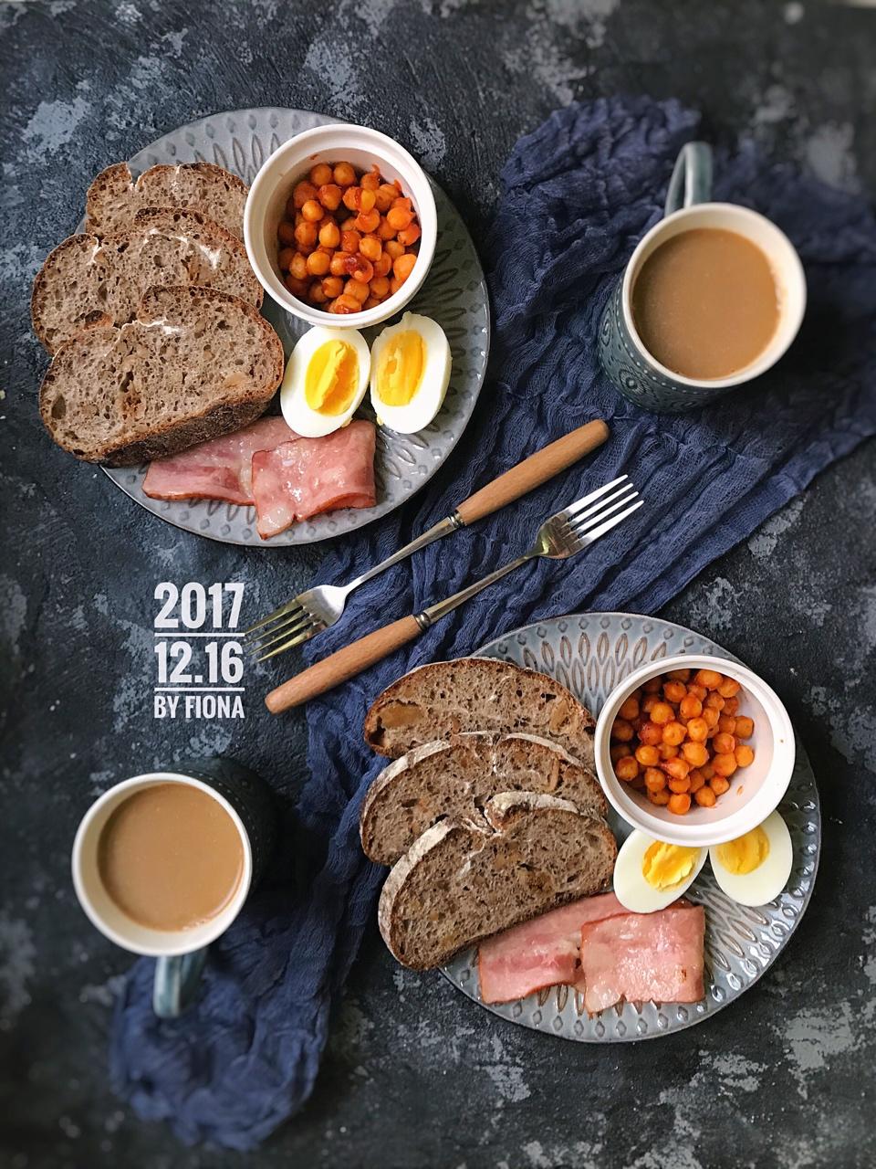20171216早餐忘记发!仍然坚持打卡中!黑麦面包➕茄汁焗鹰嘴豆➕培根➕白煮蛋➕咖啡 #早餐•2017年12月16日...