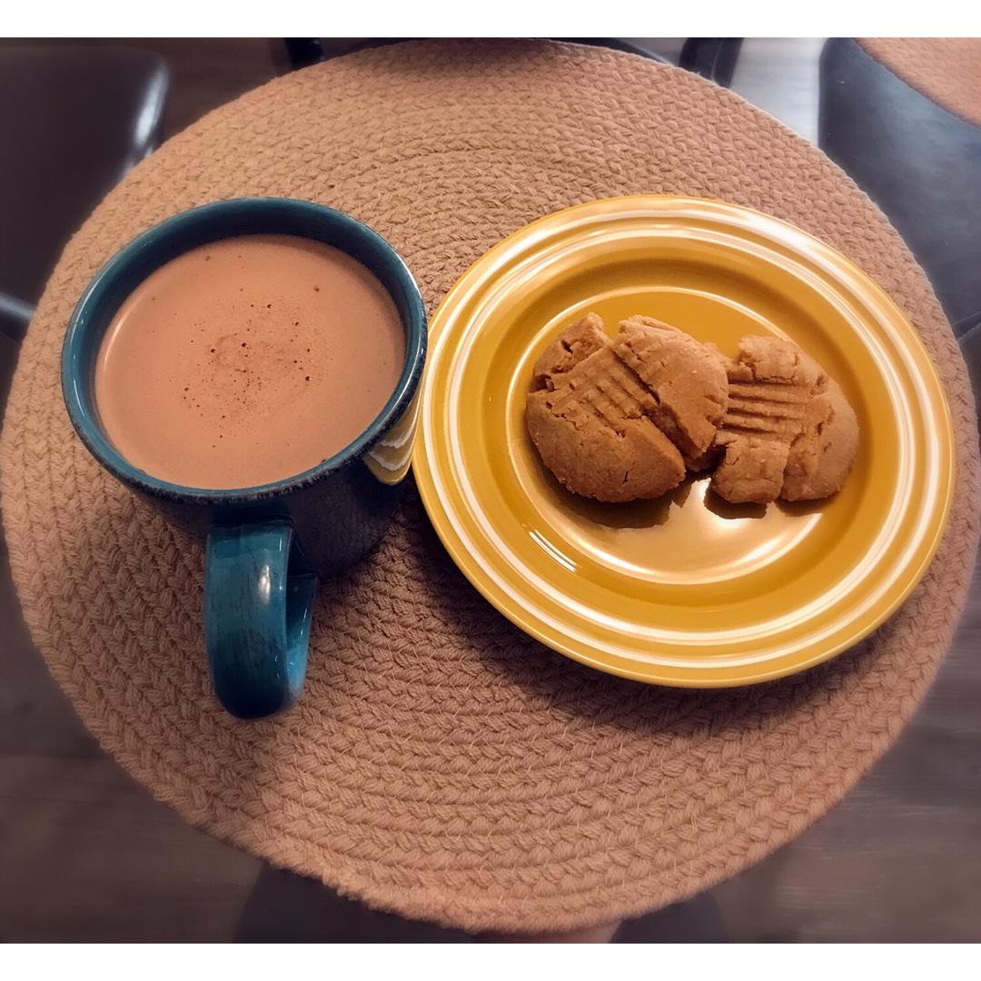 早安!Hot cocoa with peanut butter cookies!一大早好冷的,一杯热可可暖暖。 #早餐•...