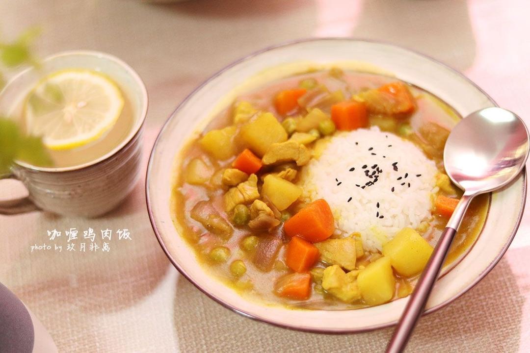 咖喱🍛鸡肉饭➕蜂蜜柠檬🍋水~